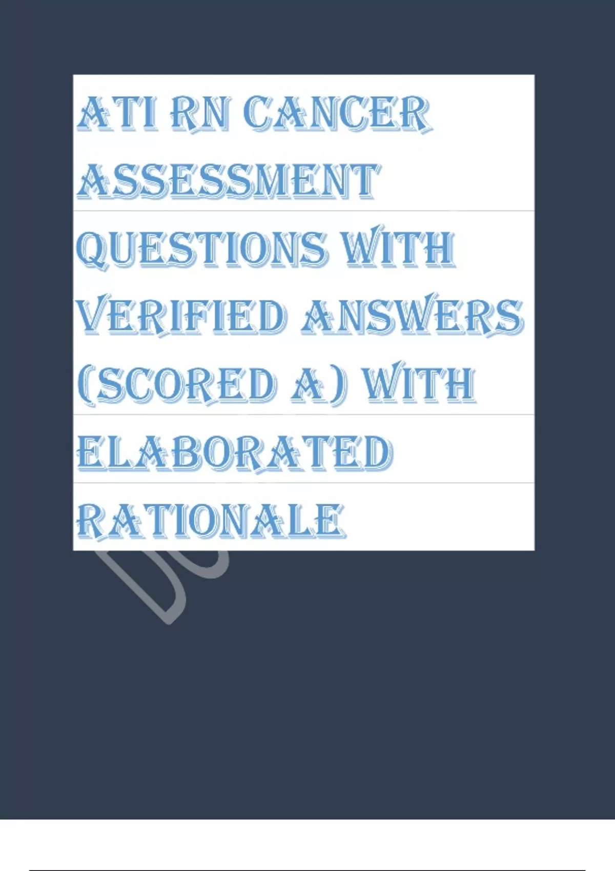ATI RN cancer assessment questions with verified answers and well elaborated rationale