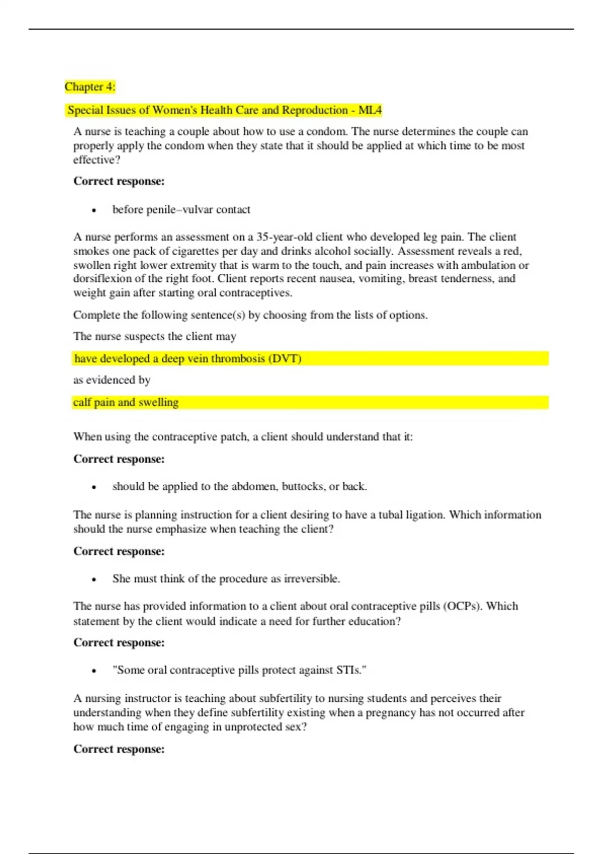 Special Issues of Women's Health Care and Reproduction - ML4 A nurse is teaching a couple about how to use a condom. The nurse determines the couple can properly apply the condom when they state that it should be applied at which time to be most effective? Correct response: • before penile–vulvar contact