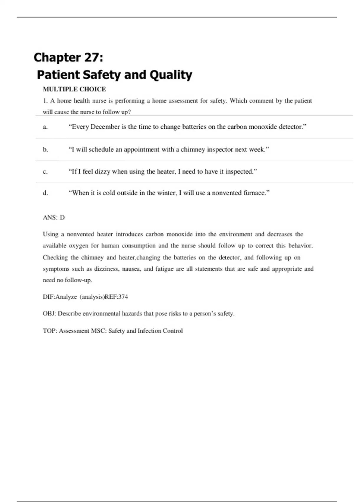 TOP: Assessment MSC: Safety and Infection Control