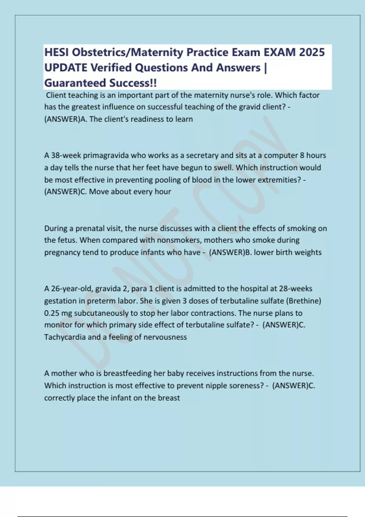 HESI Obstetrics/Maternity Practice Exam EXAM 2025 UPDATE Verified Questions And Answers | Guaranteed Success!!