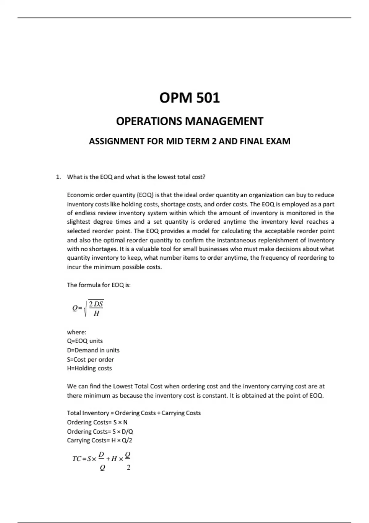 ASSIGNMENT FOR MID TERM 2 AND FINAL EXAM