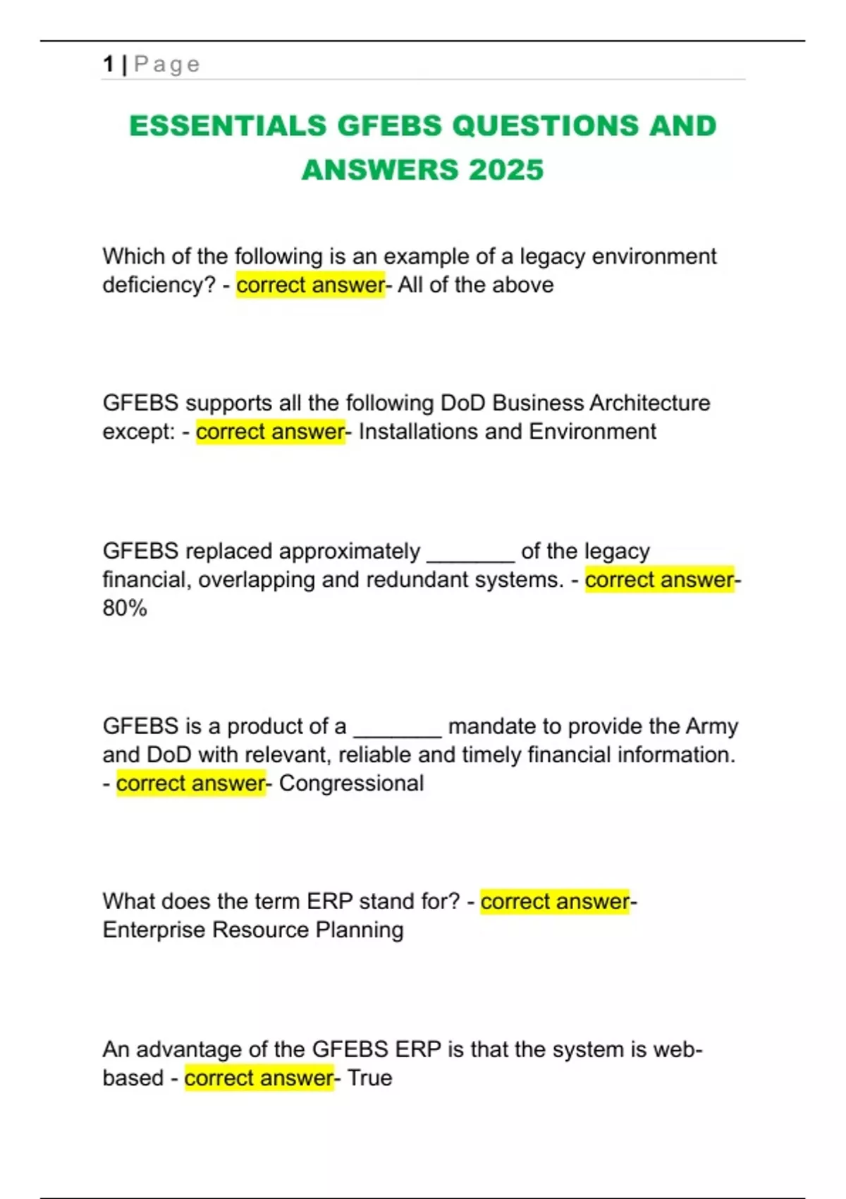 ESSENTIALS GFEBS QUESTIONS AND
