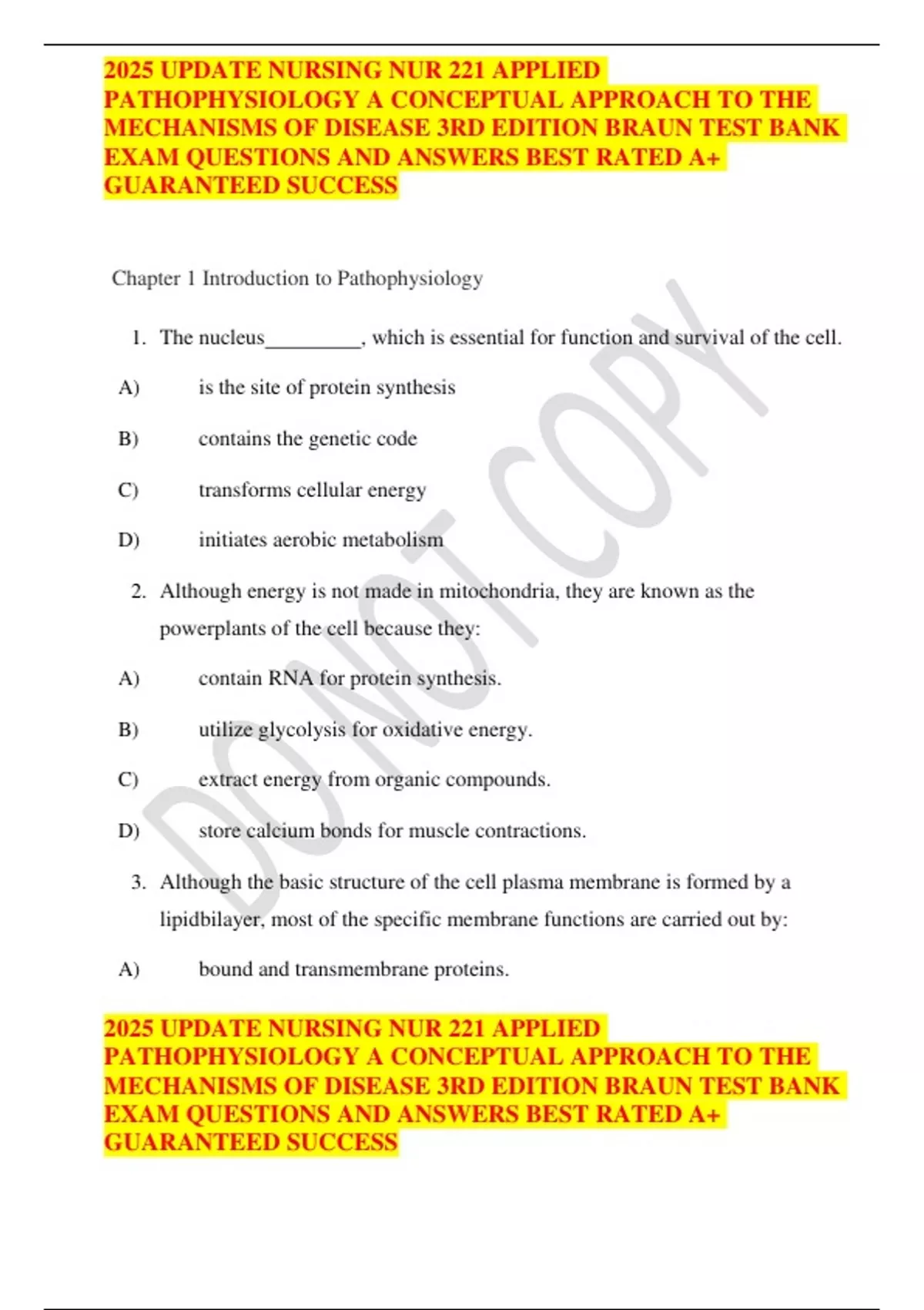 MECHANISMS OF DISEASE 3RD EDITION BRAUN TEST BANK