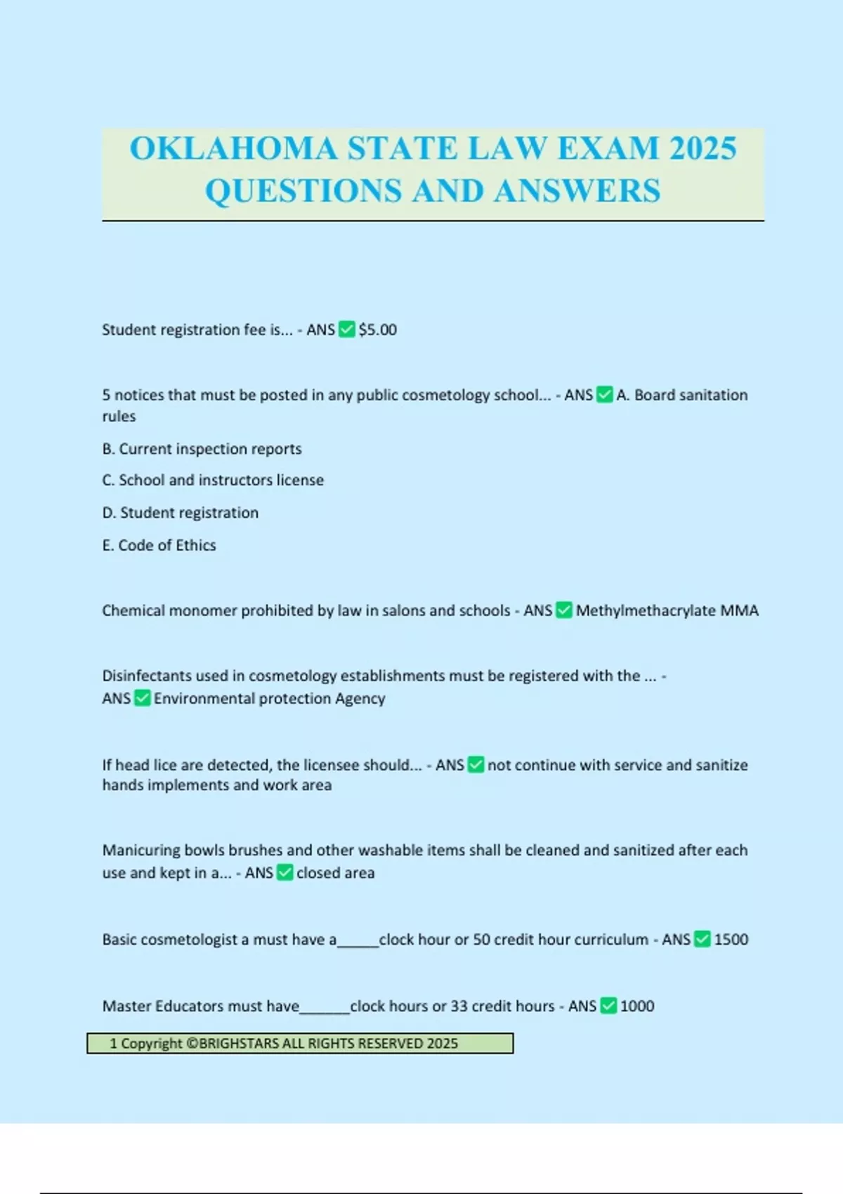 5 notices that must be posted in any public cosmetology school... - ANS A. Board sanitation