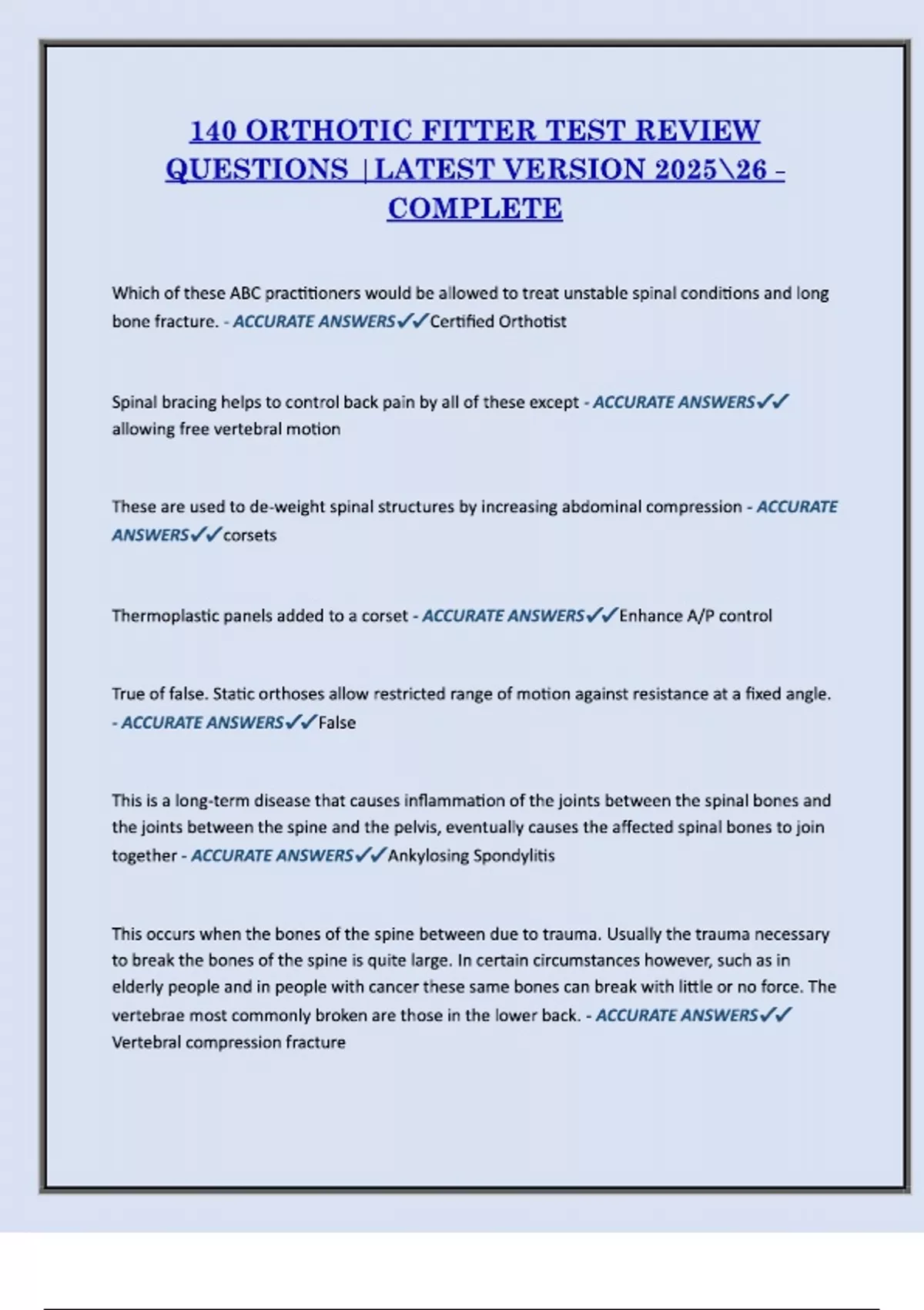 140 ORTHOTIC FITTER TEST REVIEW QUESTIONS |LATEST VERSION 202526 -COMPLETE 140 ORTHOTIC FITTER TEST REVIEW QUESTIONS |LATEST VERSION 202526 -COMPLETE 140 ORTHOTIC FITTER TEST REVIEW QUESTIONS |LATEST VERSION 202526 -COMPLETE
