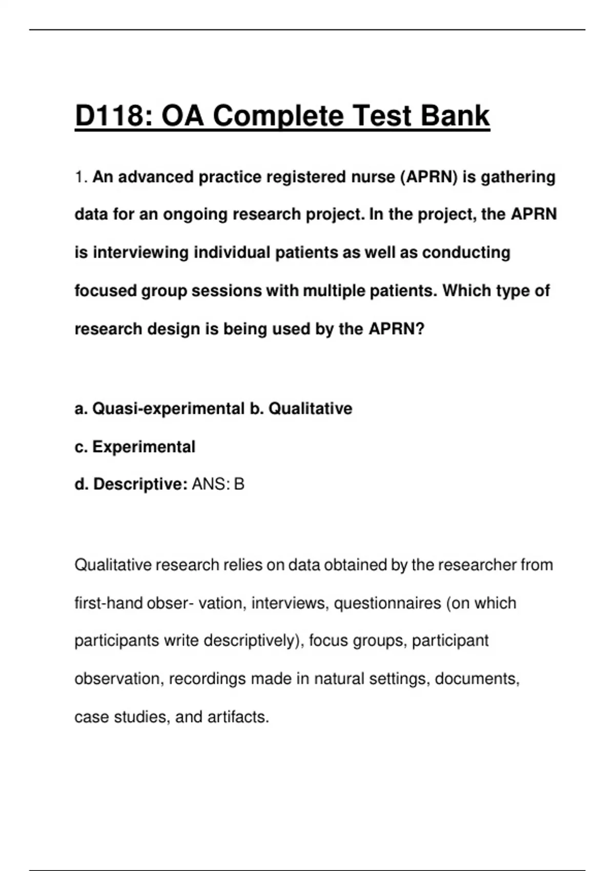 D118: OA Complete Test Bank