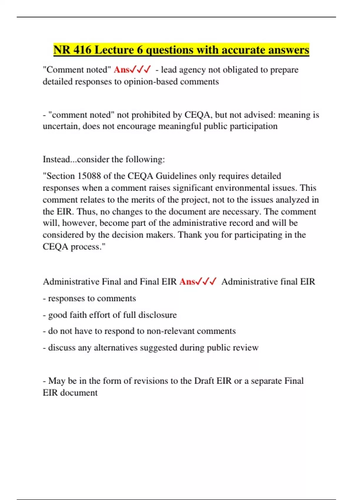 "Comment noted" Ans✓✓✓ - lead agency not obligated to prepare