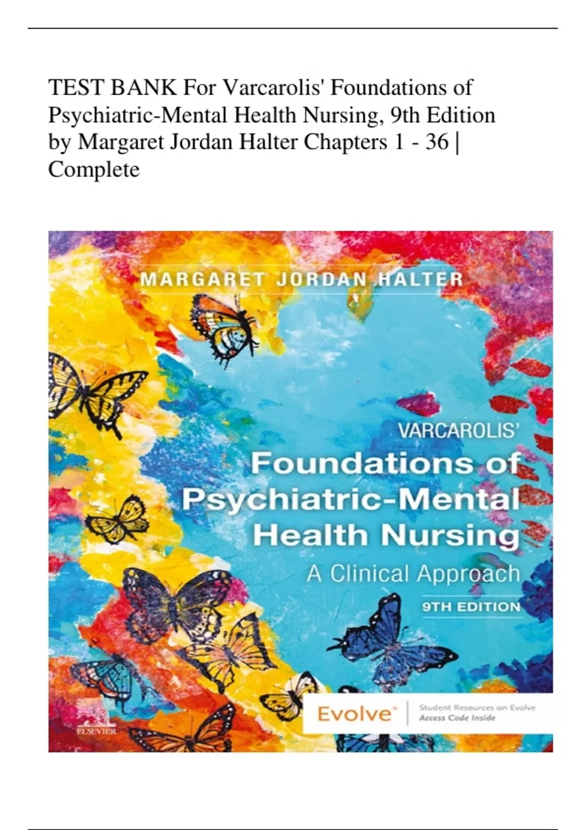 TEST BANK For Varcarolis' Foundations of Psychiatric-Mental Health Nursing, 9th Edition by Margaret Jordan Halter Chapters 1 - 36 | Complete
