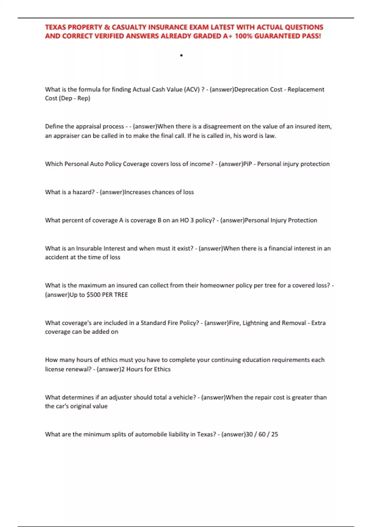 , TEXAS PROPERTY & CASUALTY INSURANCE EXAM LATEST WITH ACTUAL QUESTIONS