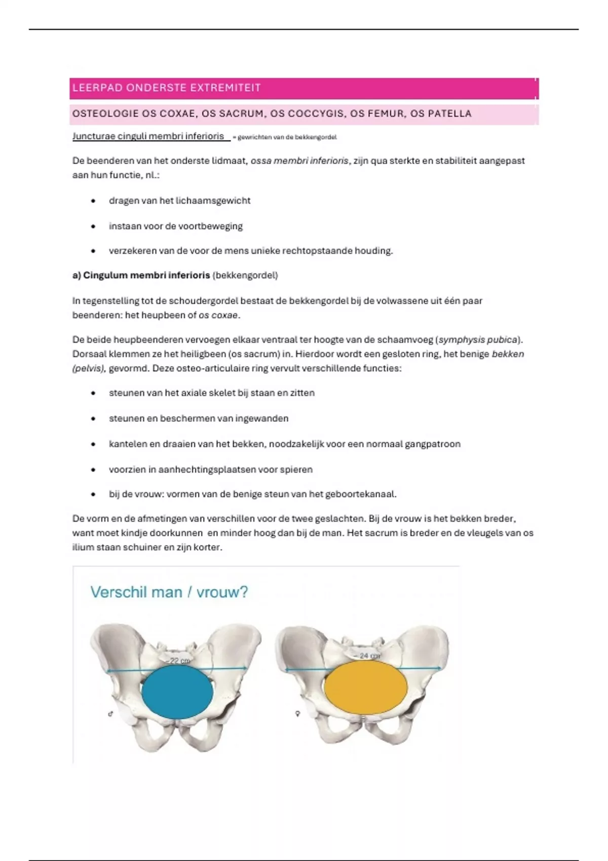 want moet kindje doorkunnen en minder hoog dan bij de man. Het sacrum is breder en de vleugels van os