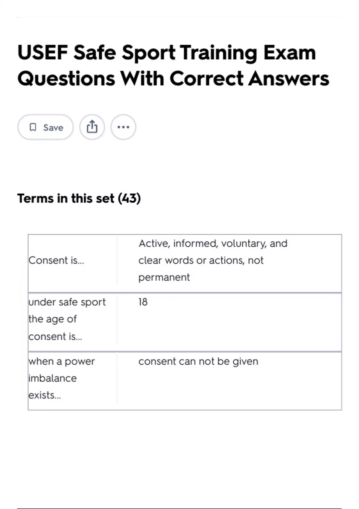 USEF Safe Sport Training Exam Questions With Correct Answers