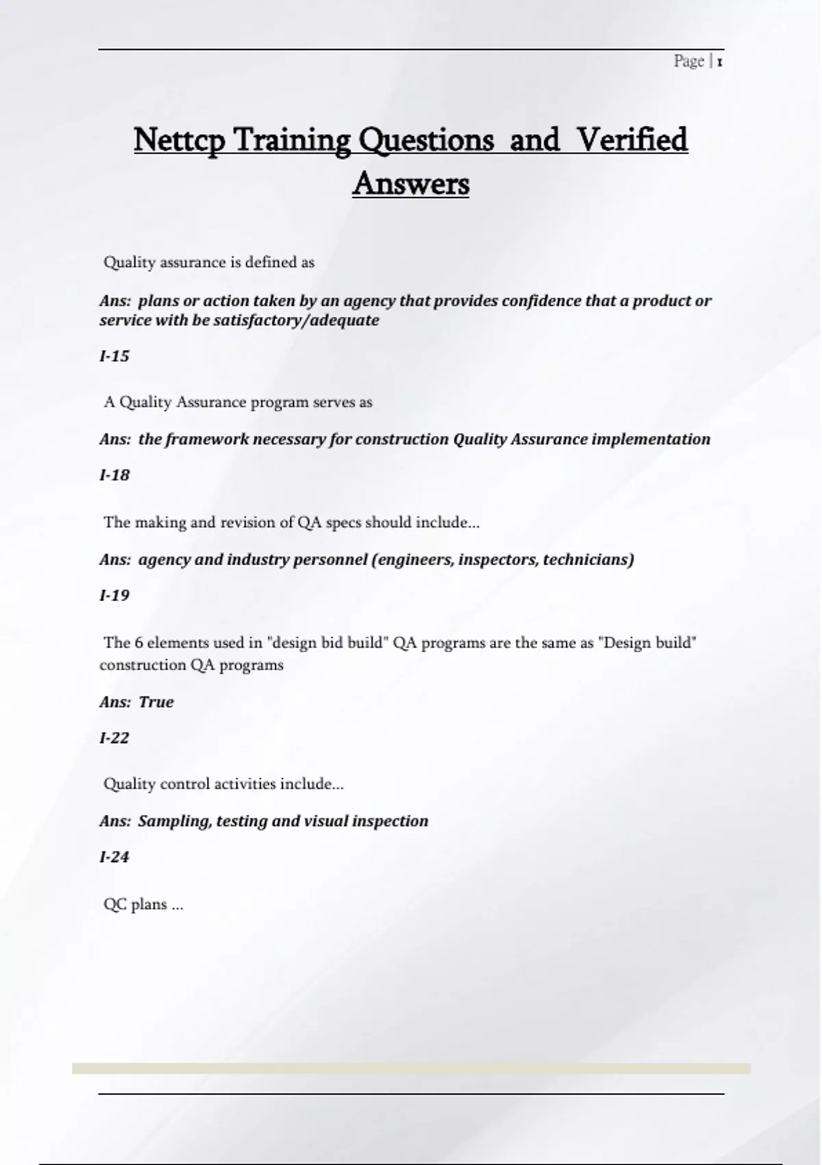 QC plans ...