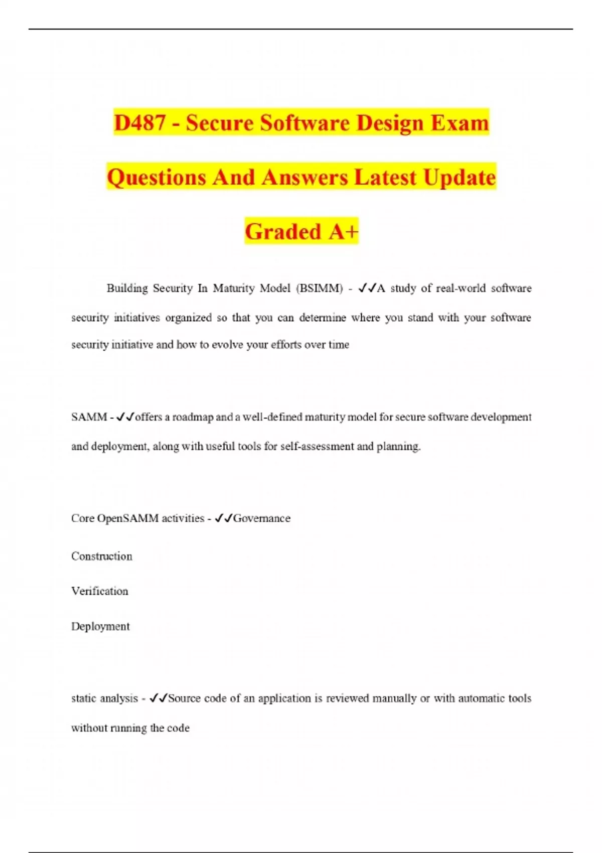 D487 - Secure Software Design Exam Questions And Answers Latest Update Graded A+