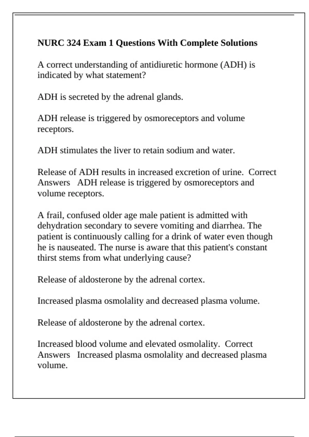 Answers Increased plasma osmolality and decreased plasma