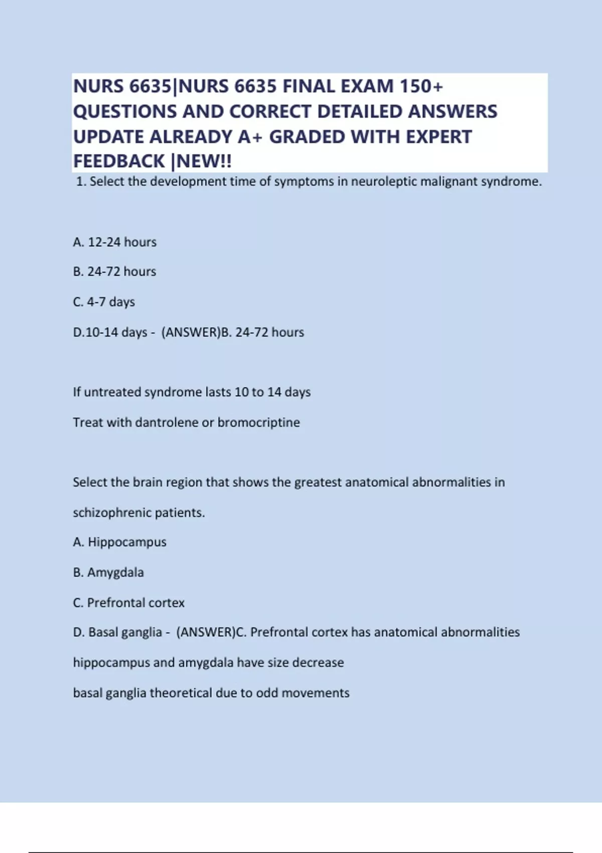 NURS 6635|NURS 6635 FINAL EXAM 150+ QUESTIONS AND CORRECT DETAILED ANSWERS UPDATE ALREADY A+ GRADED WITH EXPERT FEEDBACK |NEW!!