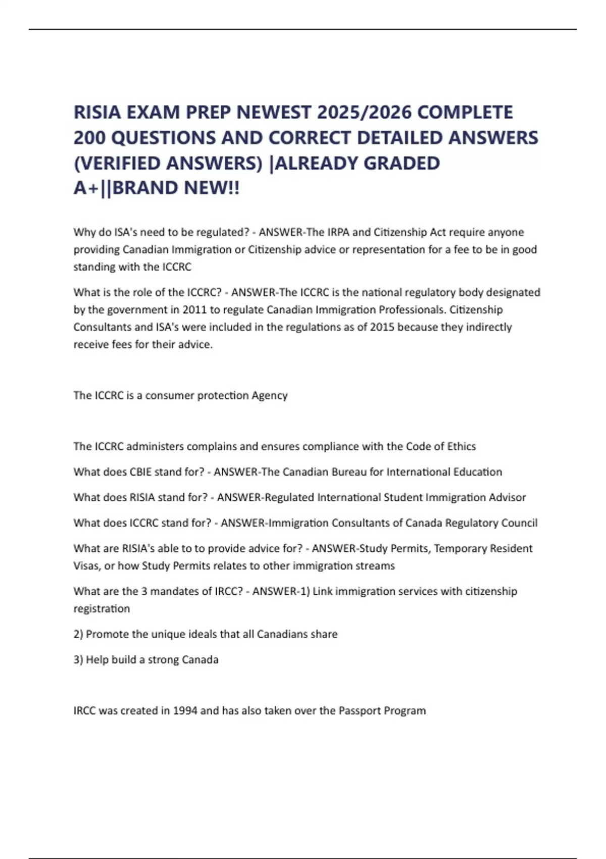 Why do ISA's need to be regulated? - ANSWER-The IRPA and Citizenship Act require anyone