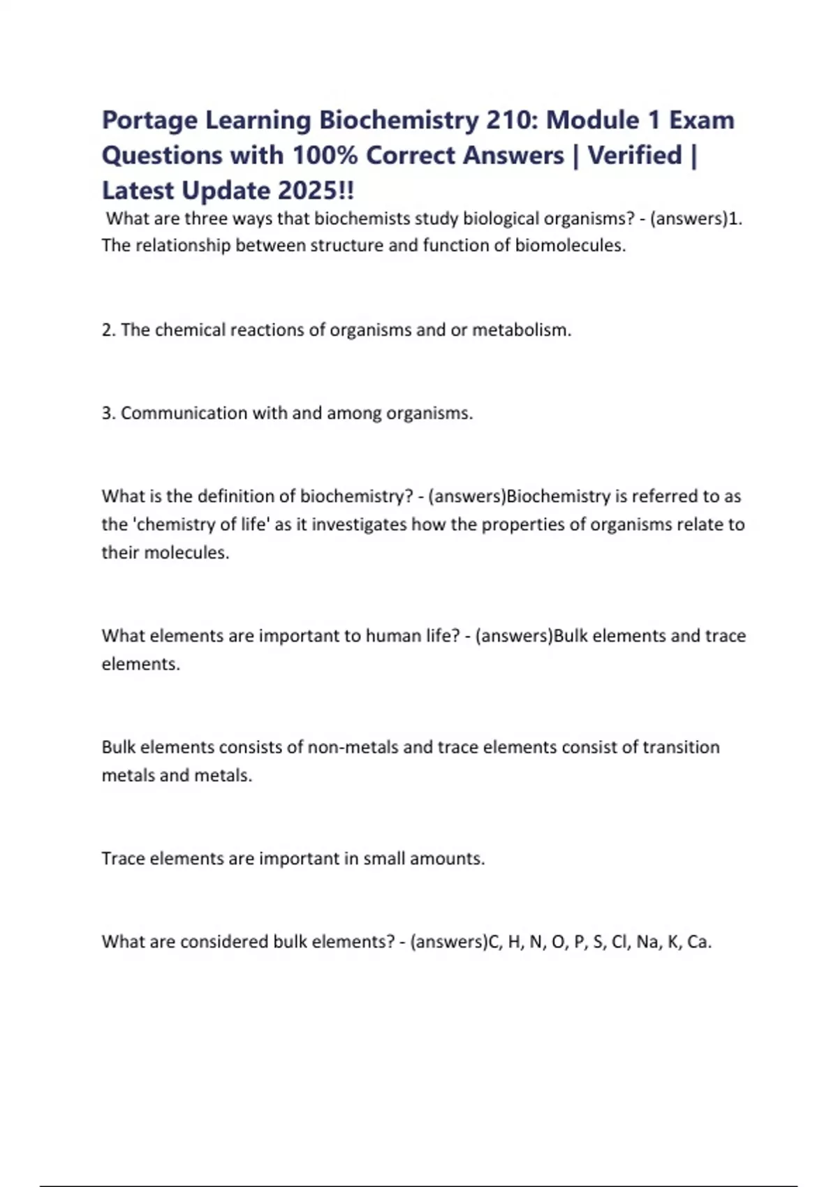 What are considered bulk elements? - (answers)C, H, N, O, P, S, Cl, Na, K, Ca.
