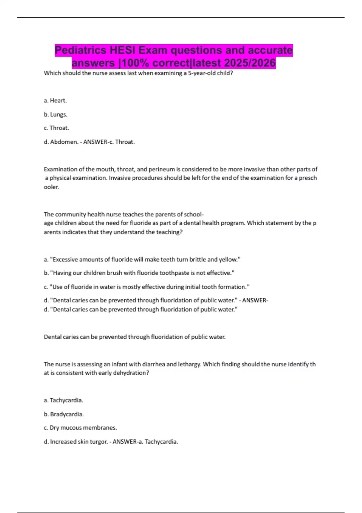 Pediatrics HESI Exam questions and accurate