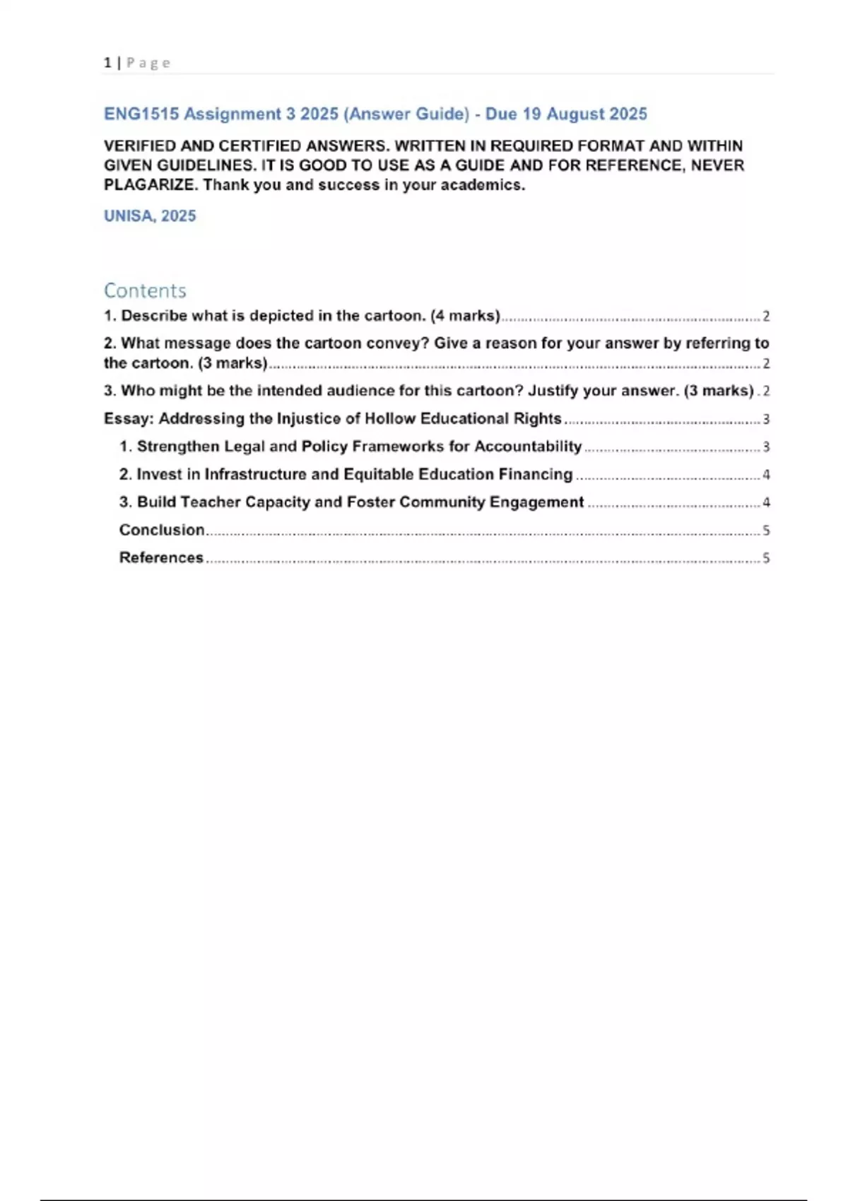 ENG1515 Assignment 3 2025 Questions with verified answers.