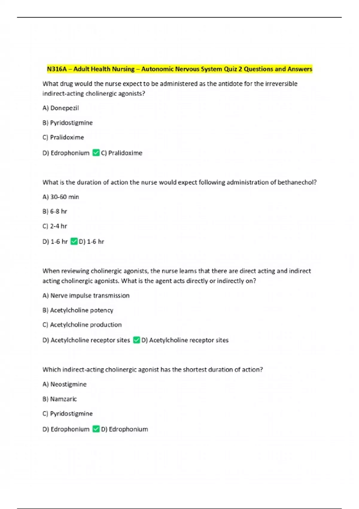 N316A – Adult Health Nursing – Autonomic Nervous System Quiz 2 Questions and Answers