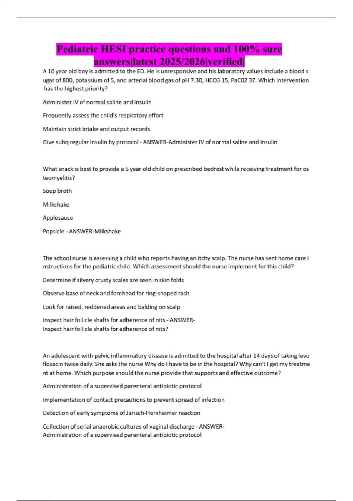 Pediatric HESI practice questions and 100% sure answers|latest 2025/2026|verified|