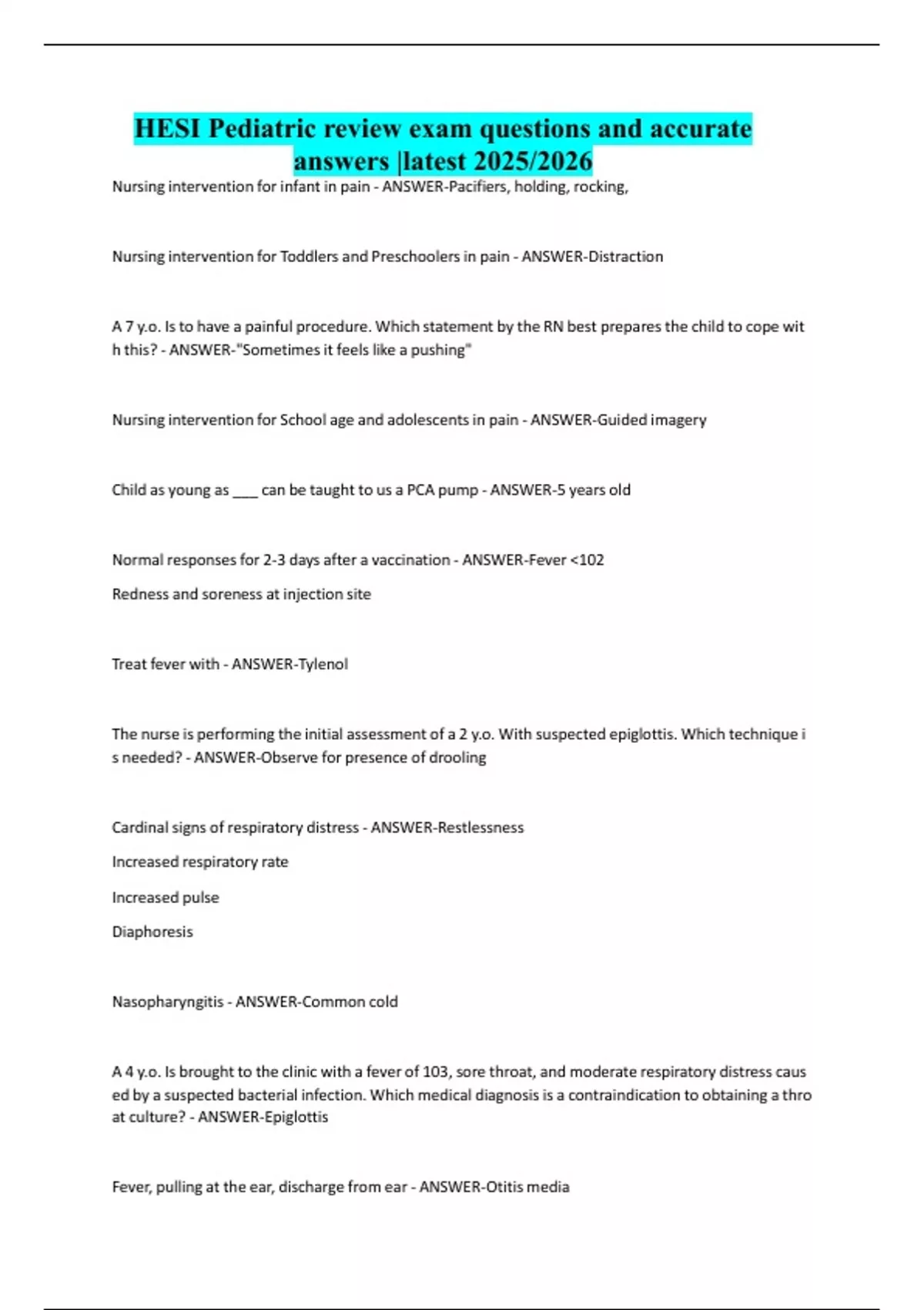 Nursing intervention for infant in pain - ANSWER-Pacifiers, holding, rocking,