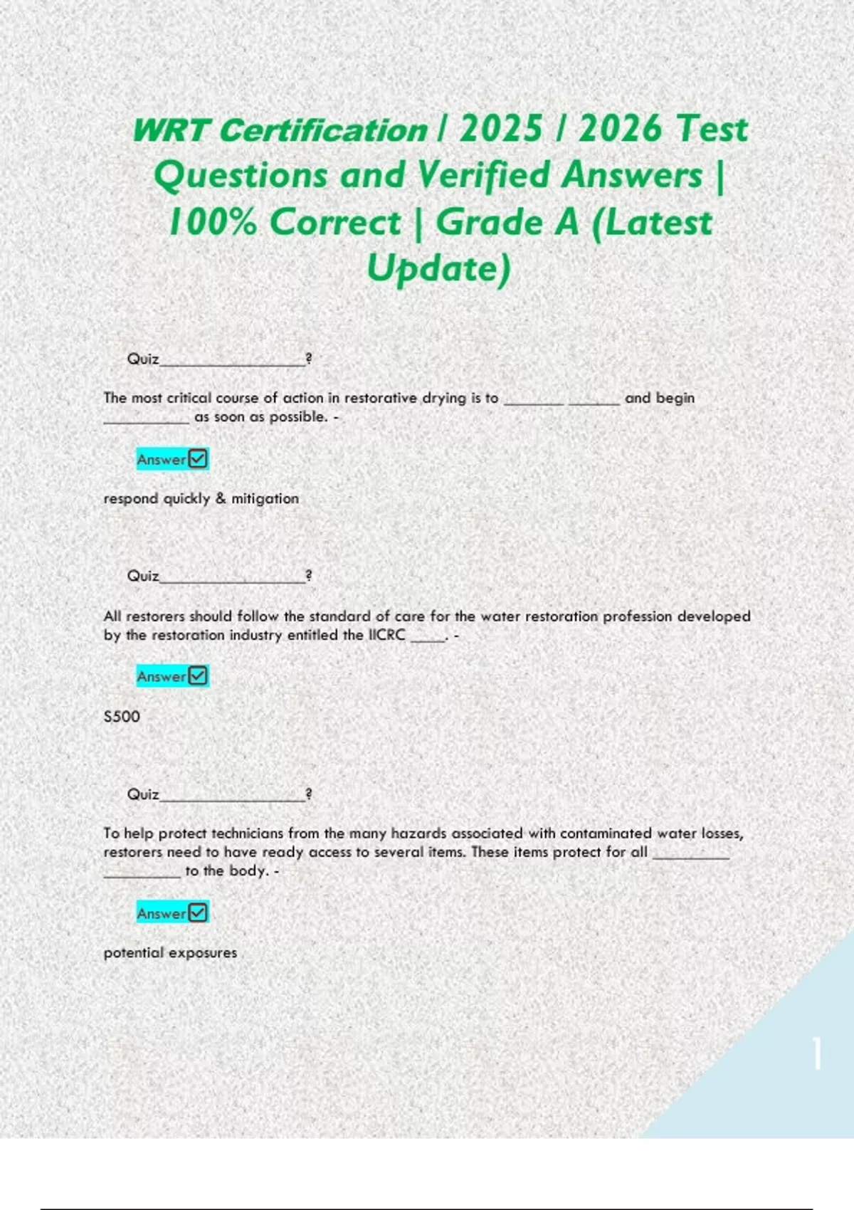 Questions and Verified Answers |