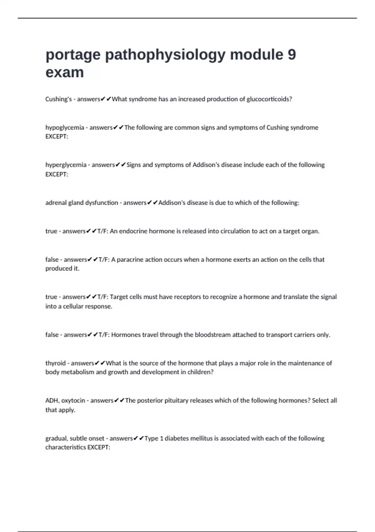 true - answers✔✔T/F: An endocrine hormone is released into circulation to act on a target organ.