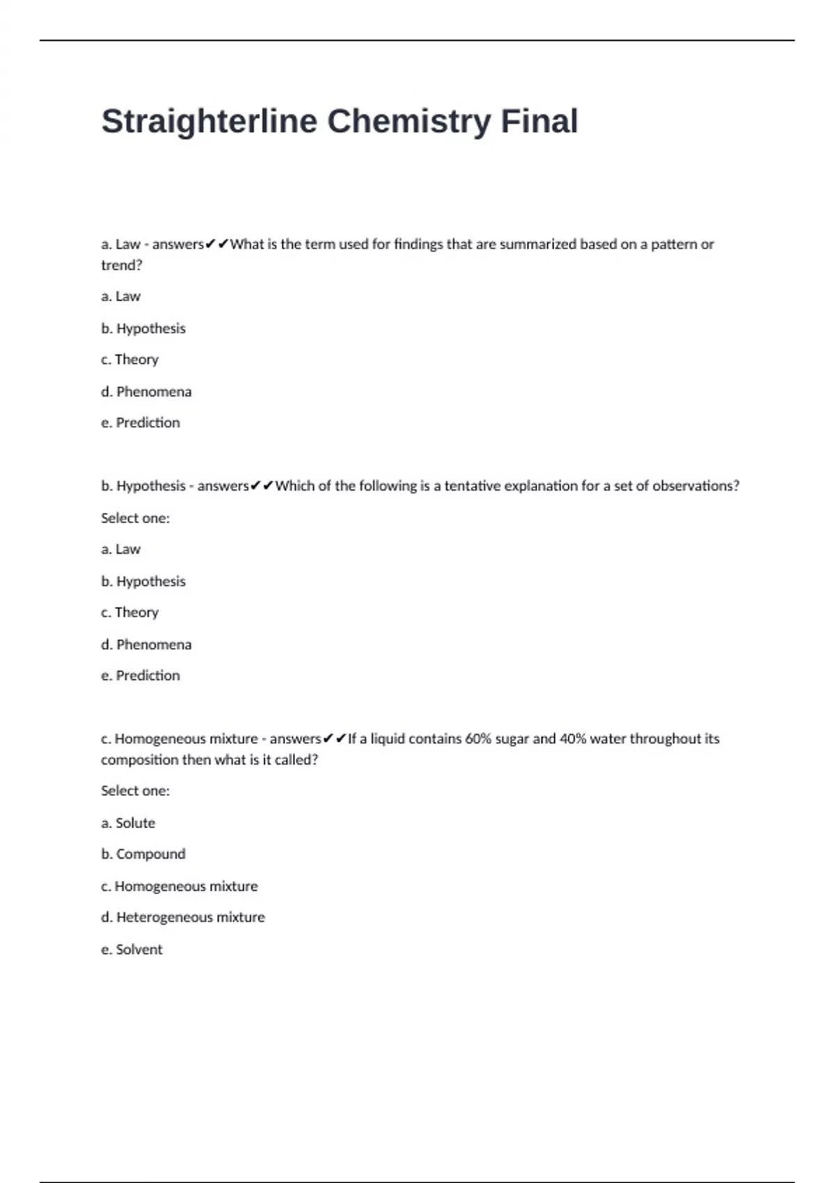 Straighterline Chemistry Fina1 questions and answers questions and answers questions and answers
