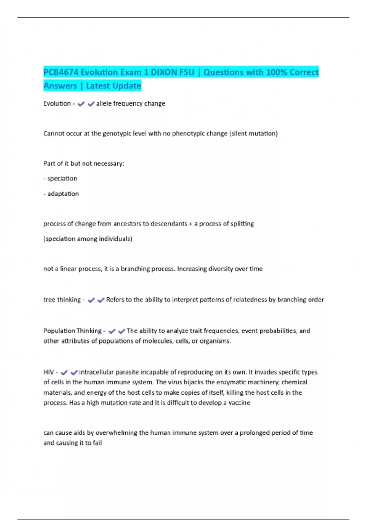 PCB4674 Evolution Exam 1 DIXON FSU | Questions with 100% Correct Answers | Latest Update