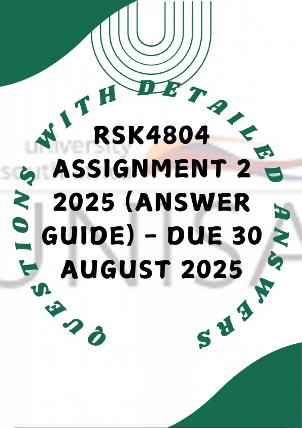 RSK4804 Assignment 2 2025 (Answer Guide) - Due 30 August 2025