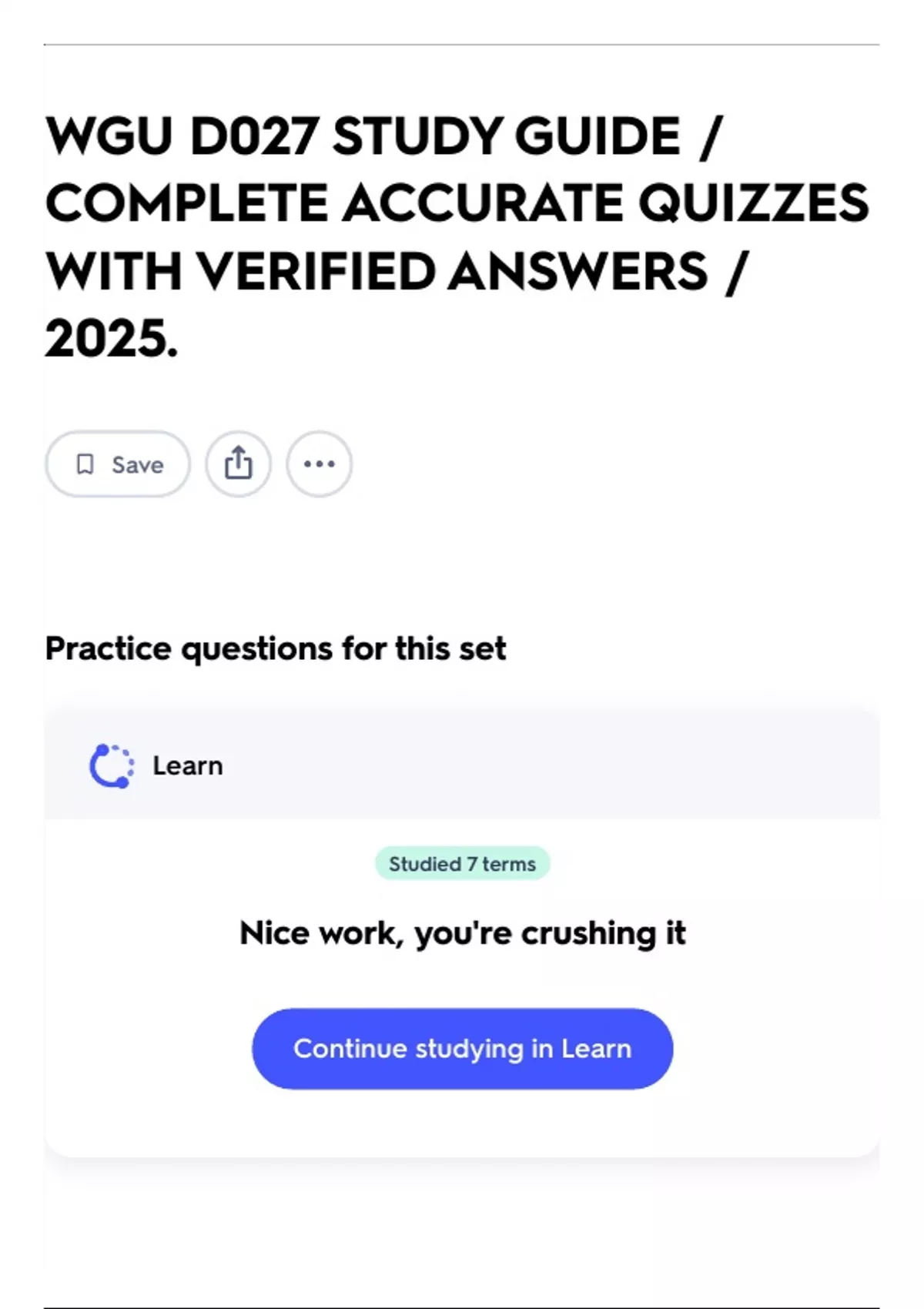 Continue studying in Learn