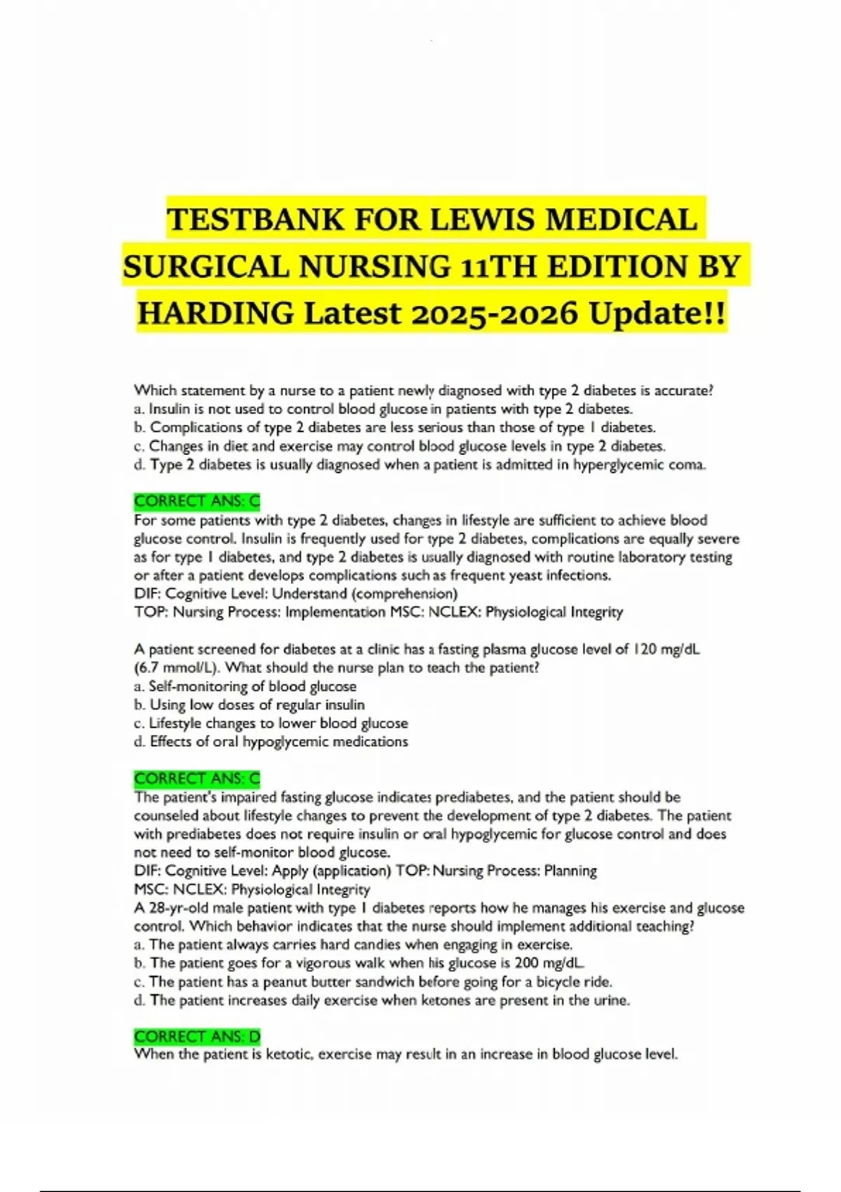 TESTBANK FOR LEWIS MEDICAL SURGICAL NURSING |11TH EDITION BY HARDING |Latest Update!!