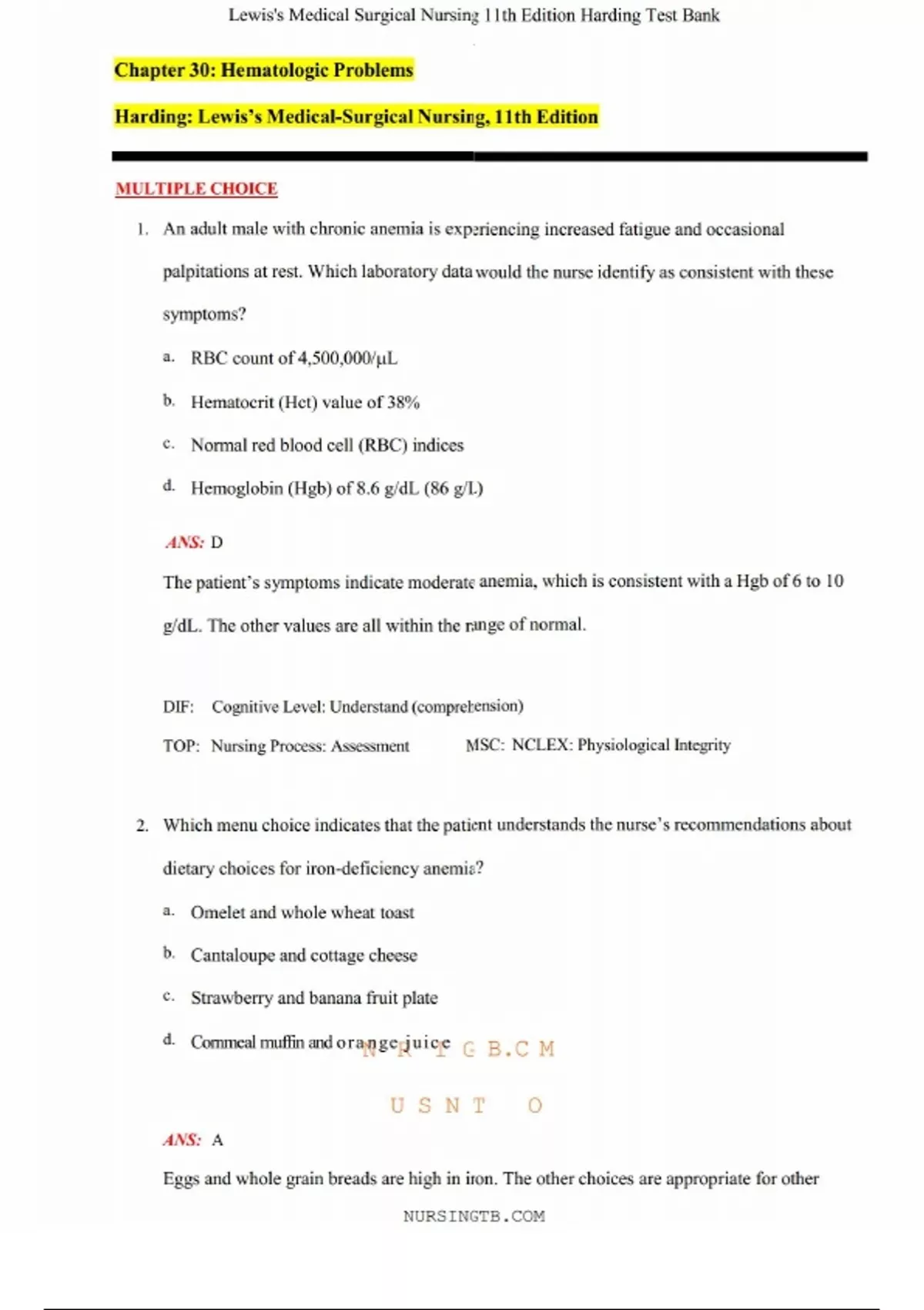 ATI chapter 30 hematologic problems harding lewis`s medical surgical nursing 11th edition latest_ correct study guide!!! download to score A+
