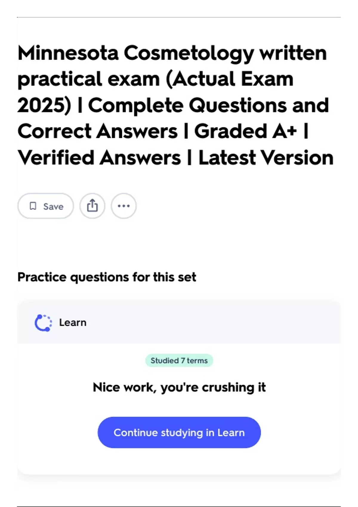 Minnesota Cosmetology written practical exam (Actual Exam 2025) | Complete Questions and Correct Answers | Graded A+ | Verified Answers | Latest Version