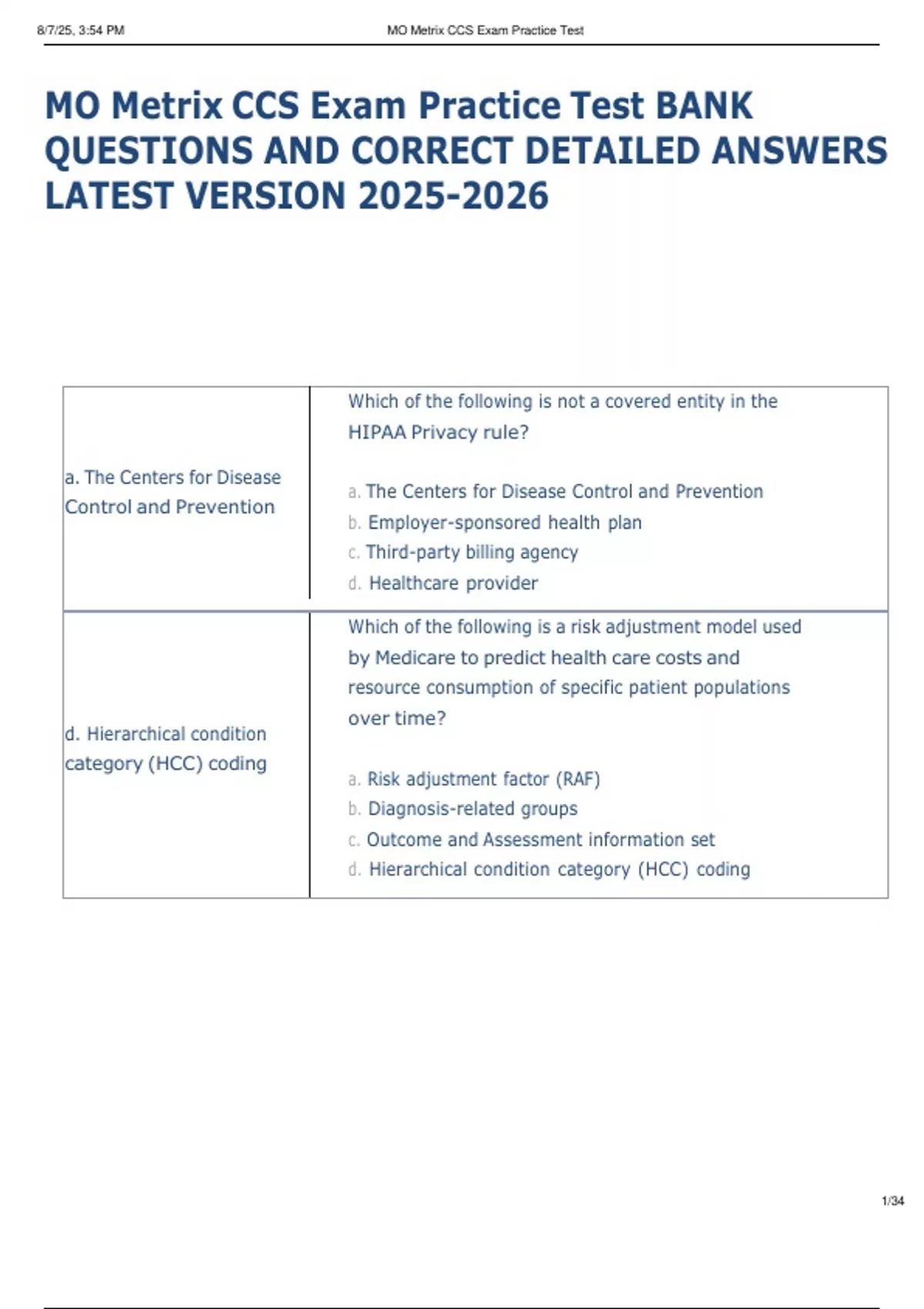 ,8/7/25, 3:54 PM MO Metrix CCS Exam Practice Test