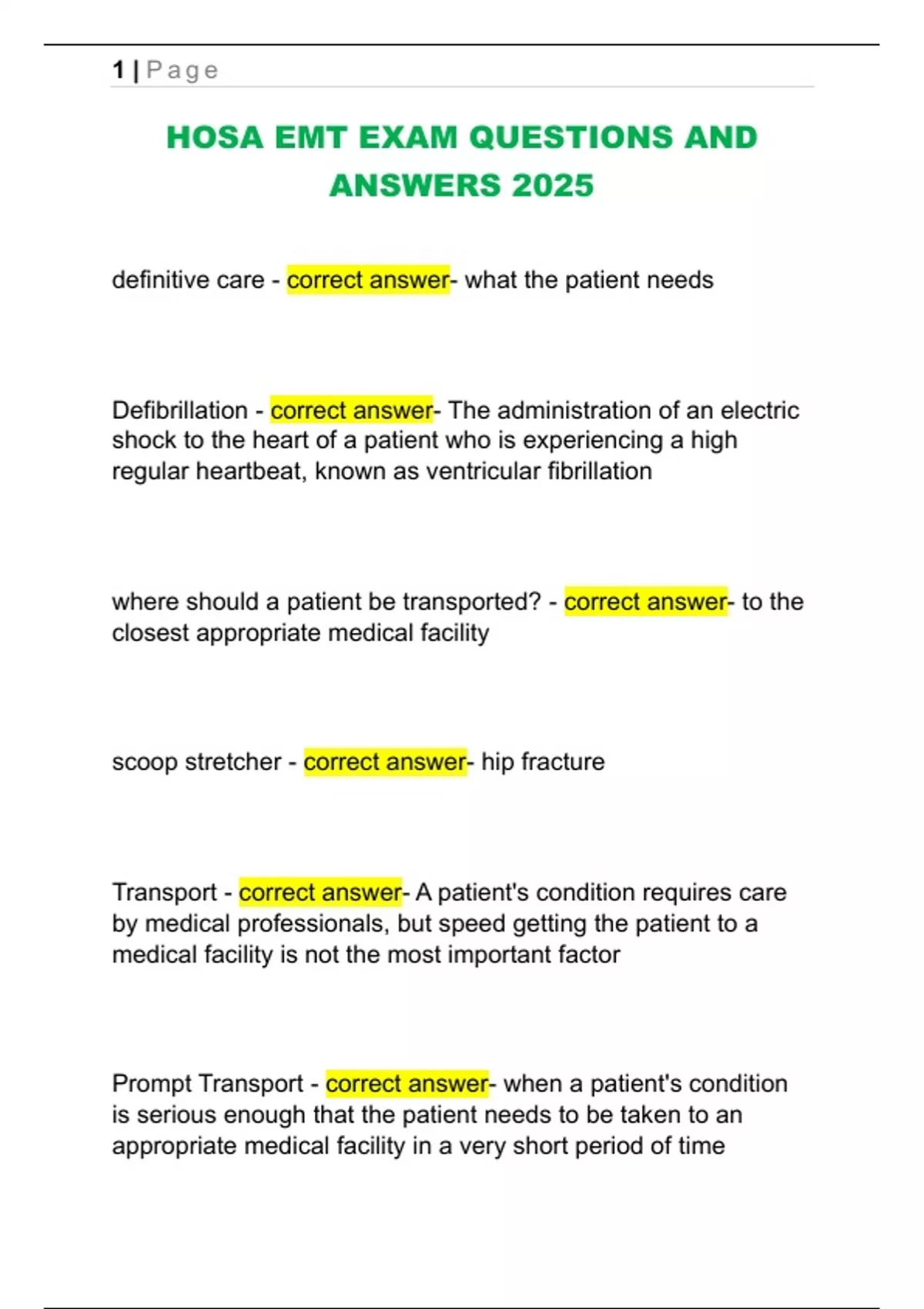 HOSA EMT EXAM QUESTIONS AND ANSWERS 2025