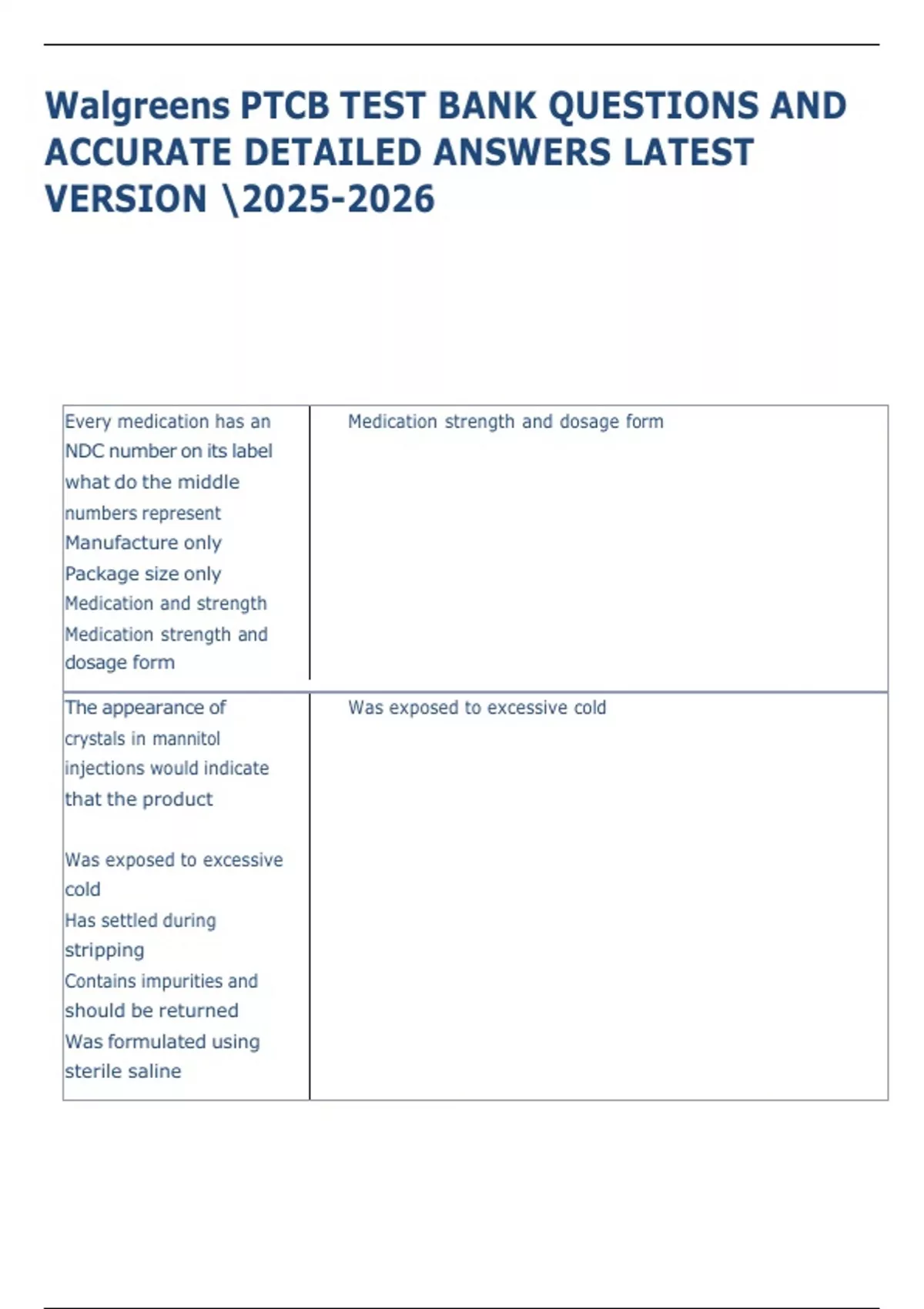 Walgreens PTCB TEST BANK QUESTIONS AND