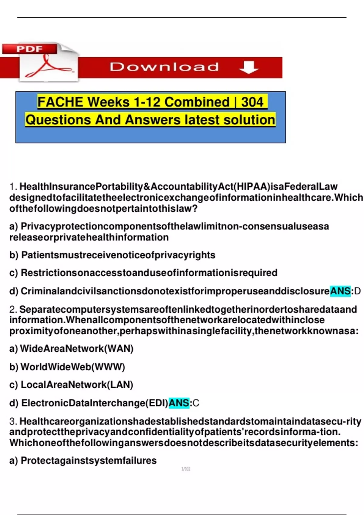 FACHE Weeks 1-12 Combined | 304 Questions And Answers latest solutionFACHE Weeks 1-12 Combined | 304 Questions And Answers latest solutionFACHE Weeks 1-12 Combined | 304 Questions And Answers latest solution
