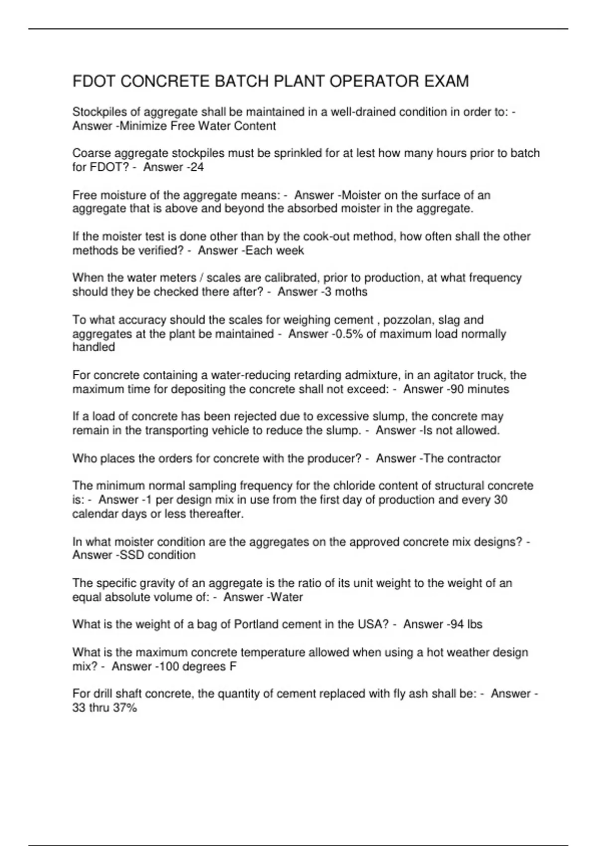 FDOT CONCRETE BATCH PLANT OPERATOR EXAM