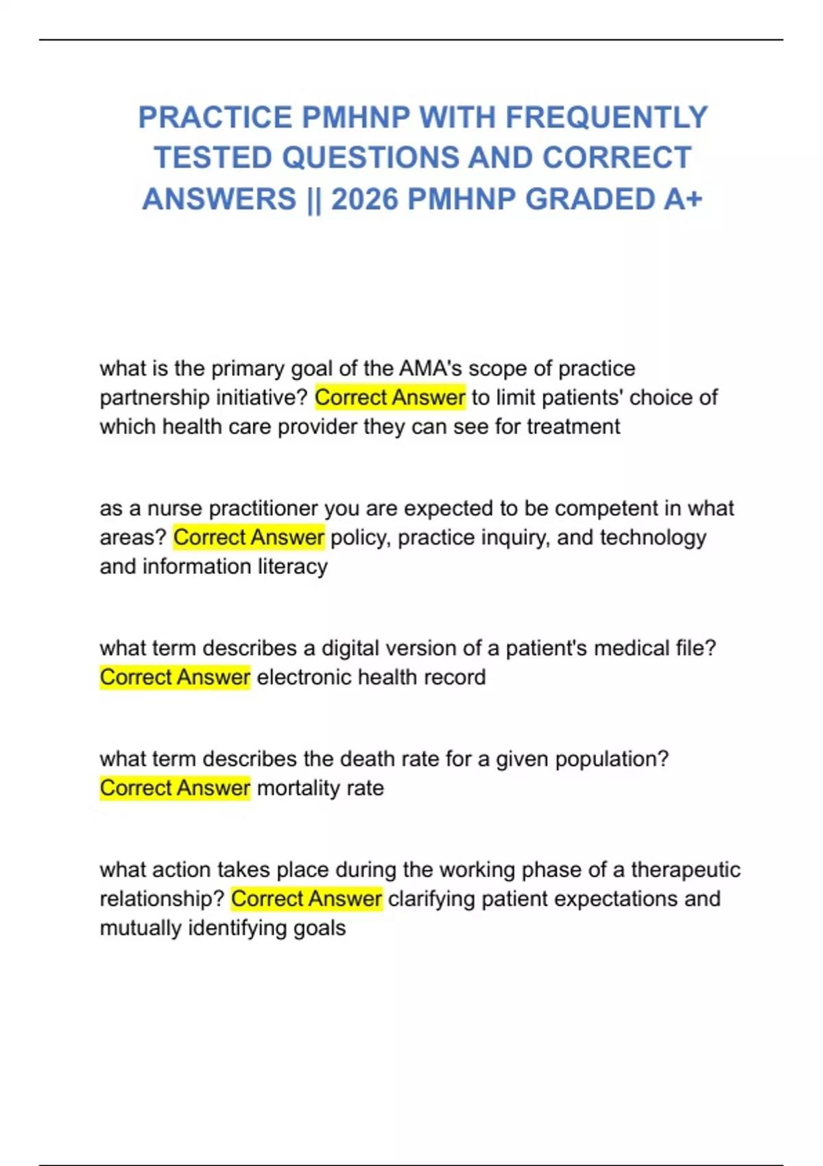 ANSWERS || 2026 PMHNP GRADED A+