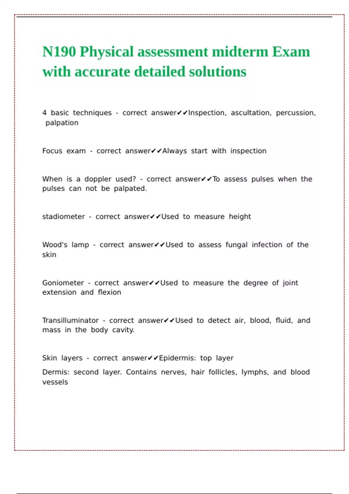 N190 Physical assessment midterm Exam with accurate detailed solutions