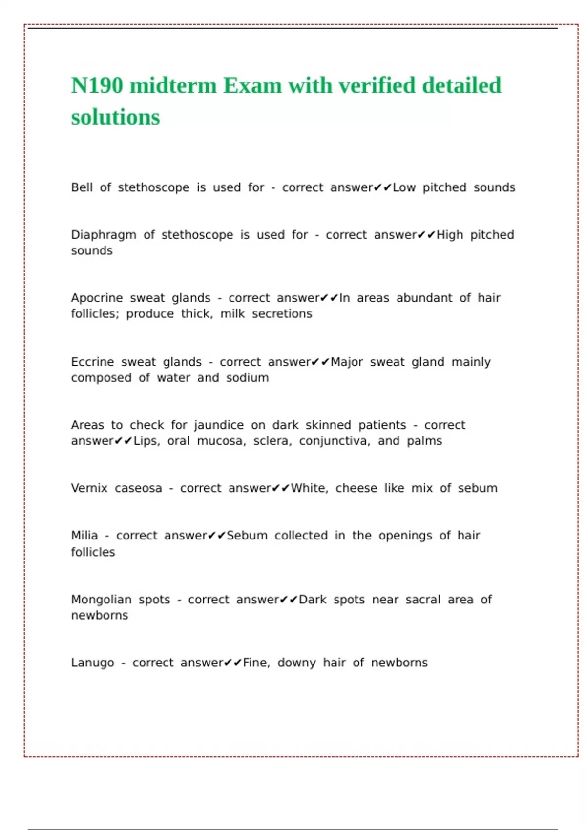 N190 midterm Exam with verified detailed