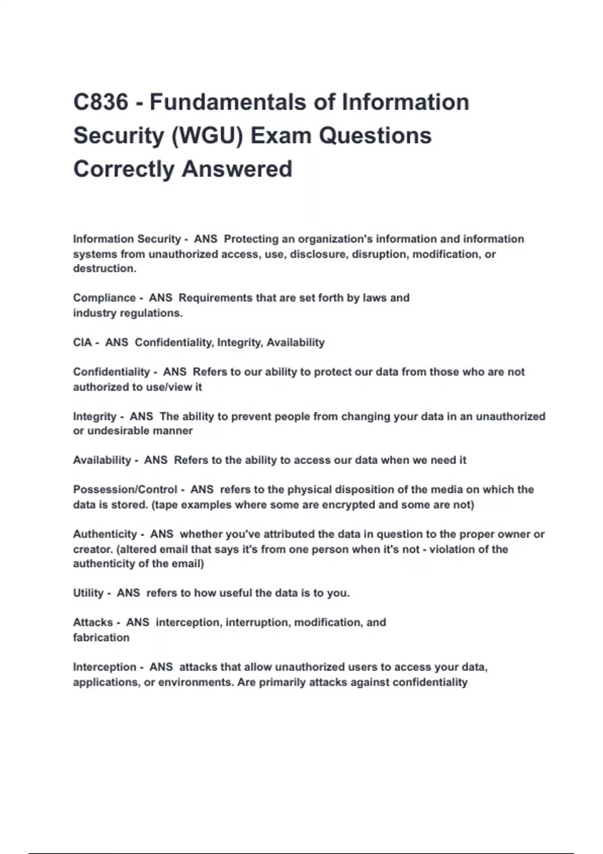 Confidentiality - ANS Refers to our ability to protect our data from those who are not