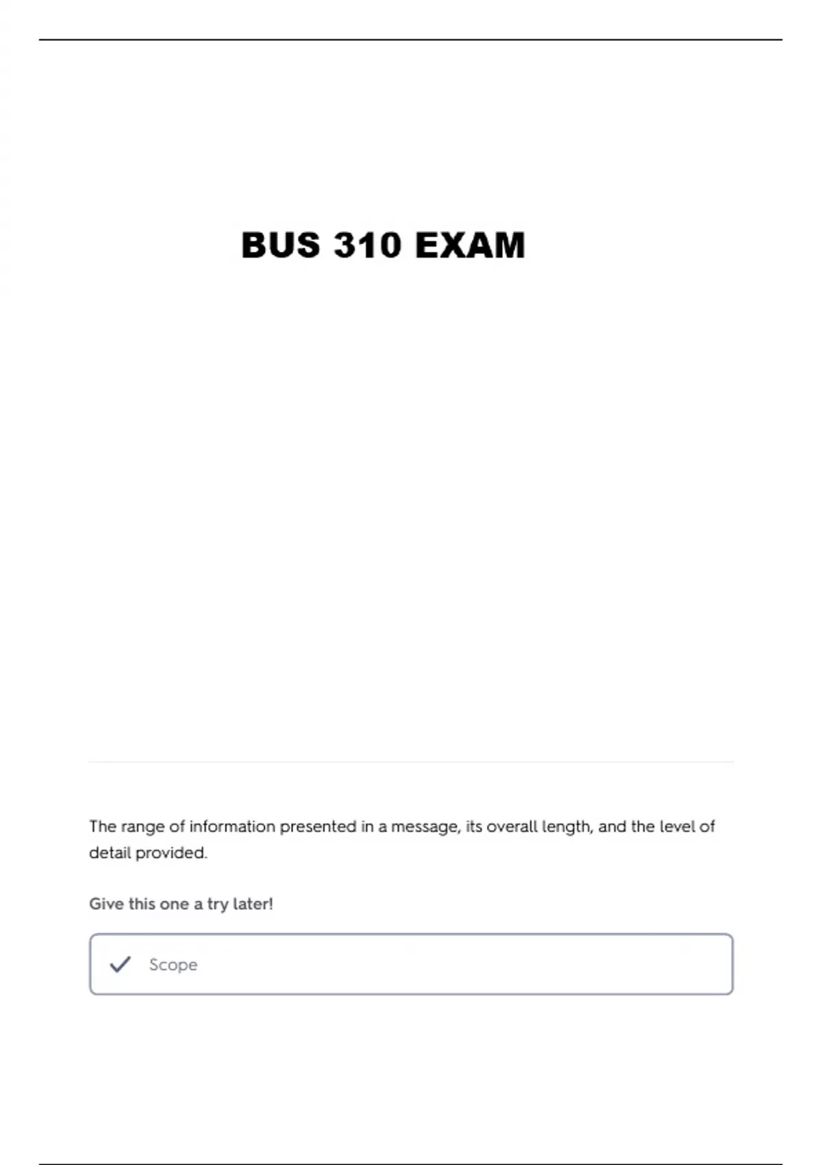 BUS 310 QUIZ 1 QUESTIONS AND VERIFIED ANSWERS