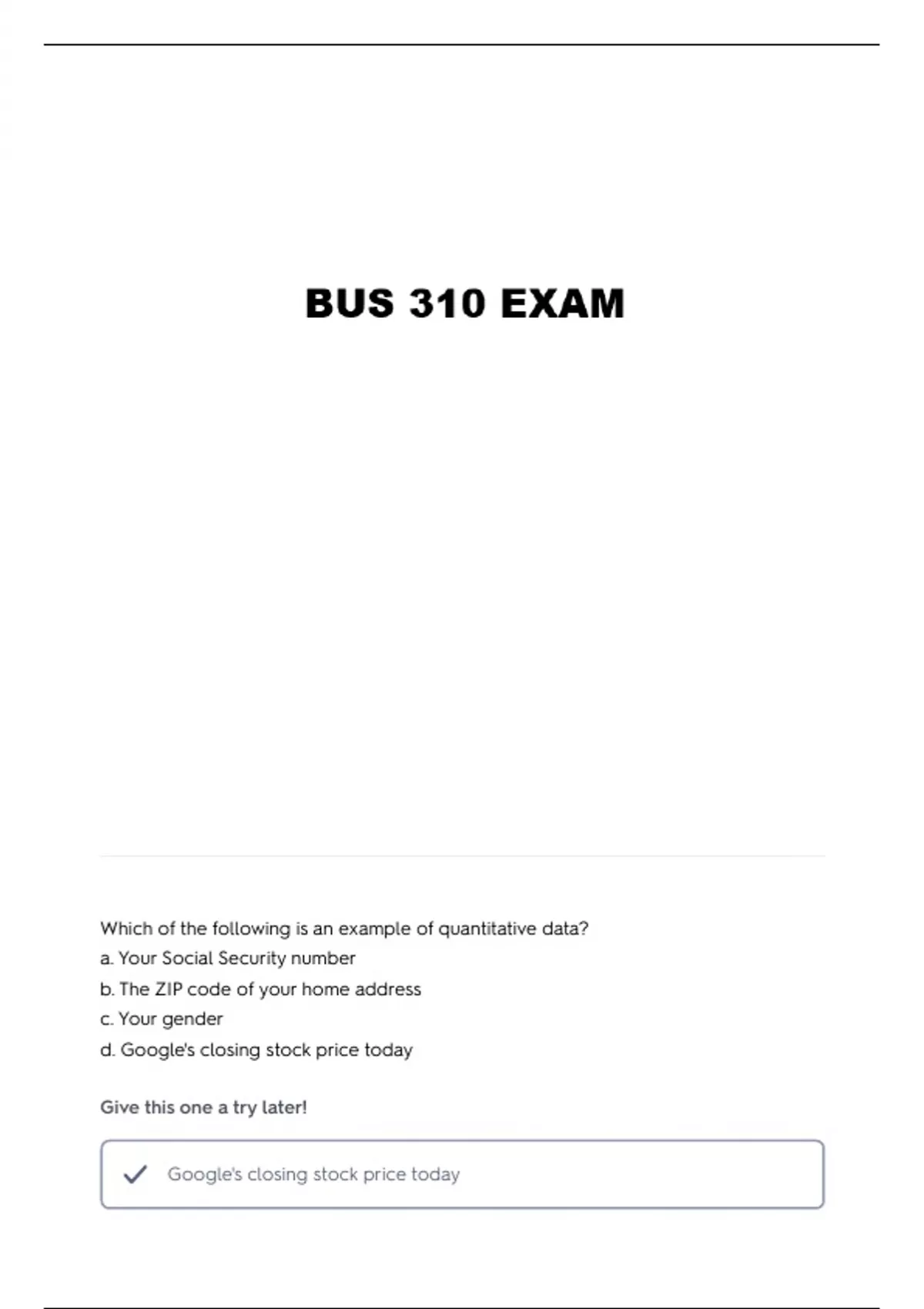 BUS 310 EXAM 1 QUESTIONS AND VERIFIED ANSWERS