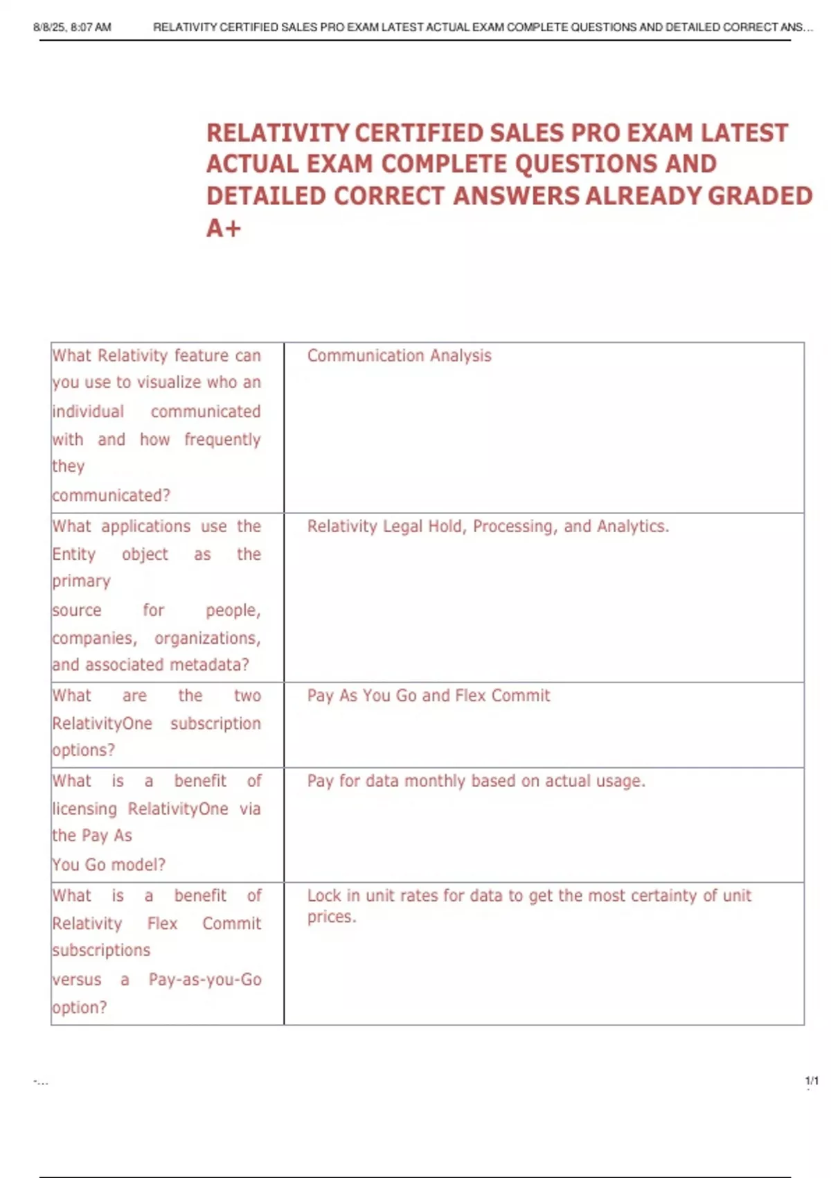 8/8/25, 8:07 AM RELATIVITY CERTIFIED SALES PRO EXAM LATEST ACTUAL EXAM COMPLETE QUESTIONS AND DETAILED CORRECT ANS…