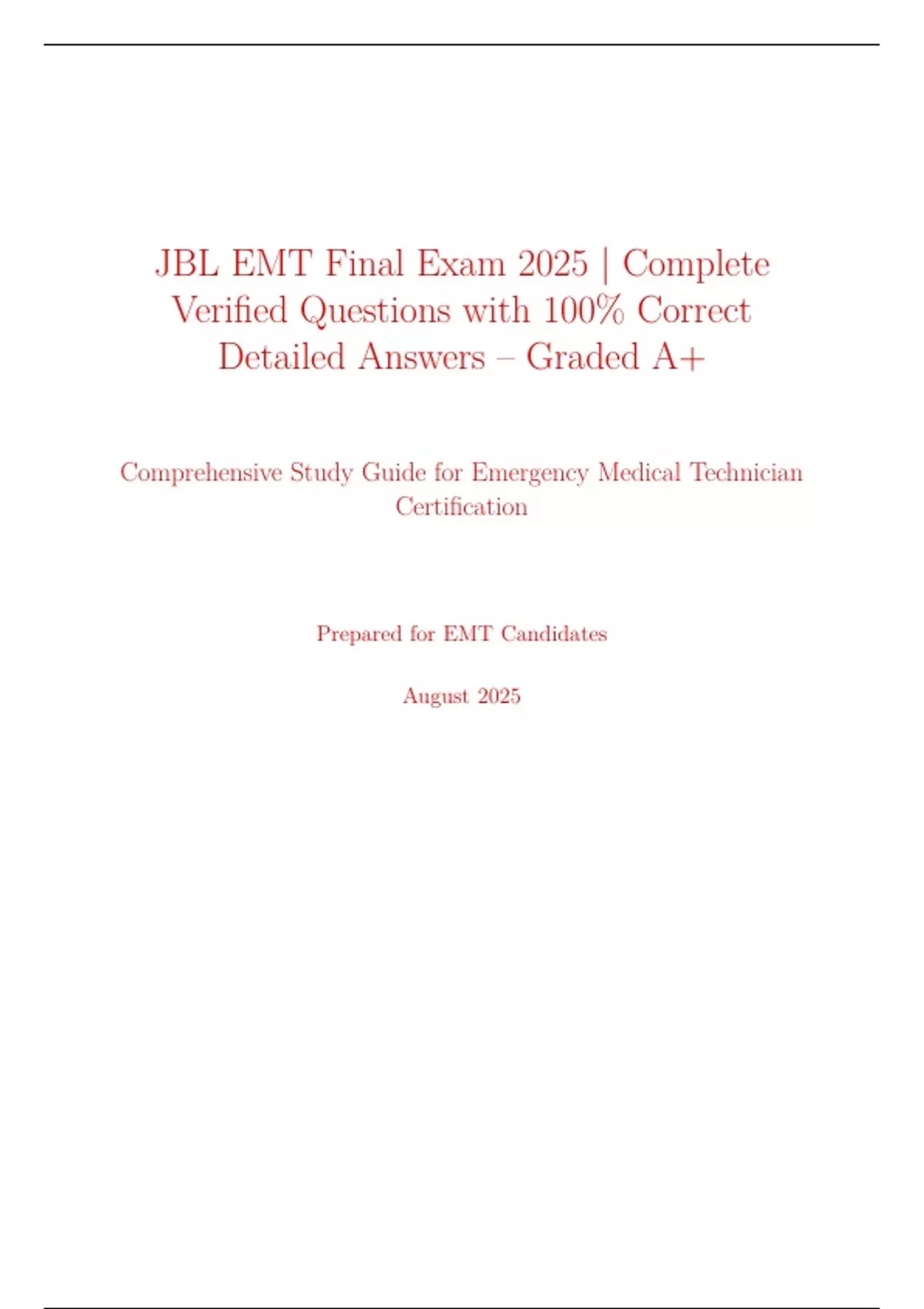 prepare for the JBL EMT Final Exam 2025. The questions cover critical topics such as