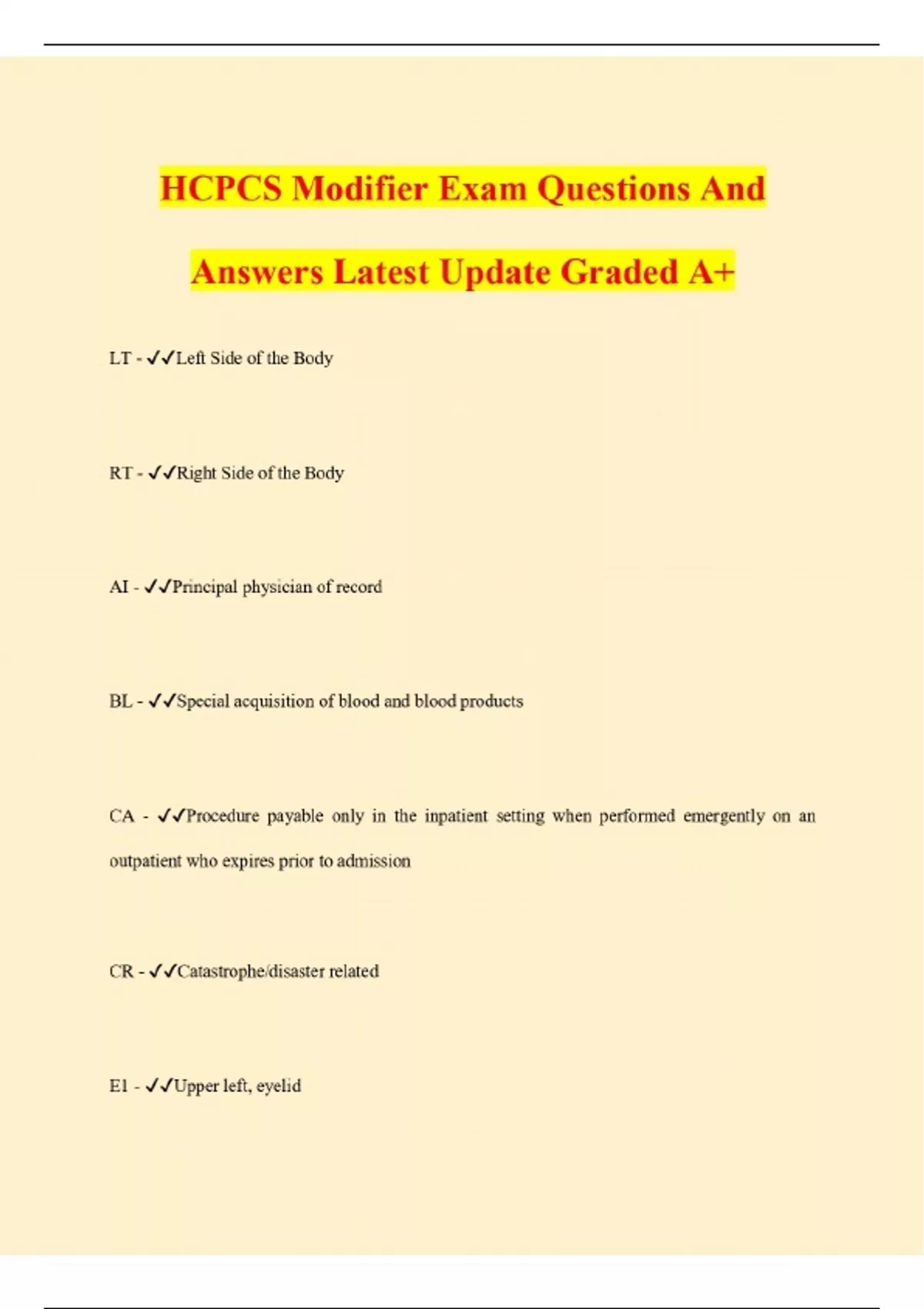 HCPCS Modifier Exam Questions And Answers Latest Update Graded A+