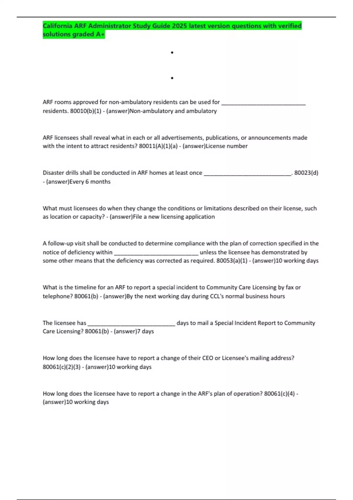 California ARF Administrator Study Guide 2025/2026 latest version 100 questions with verified solutions graded A+